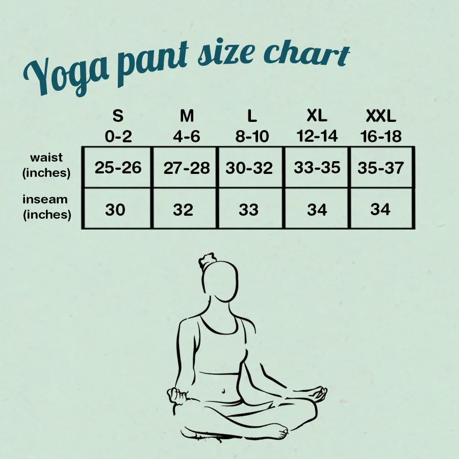 Ouryoga pants are super soft and built to last. We use eco friendly yet permanent water based inks and print in house In Oakland California.Designed and printed in the US, never overseas. Most order ship same or next business day.