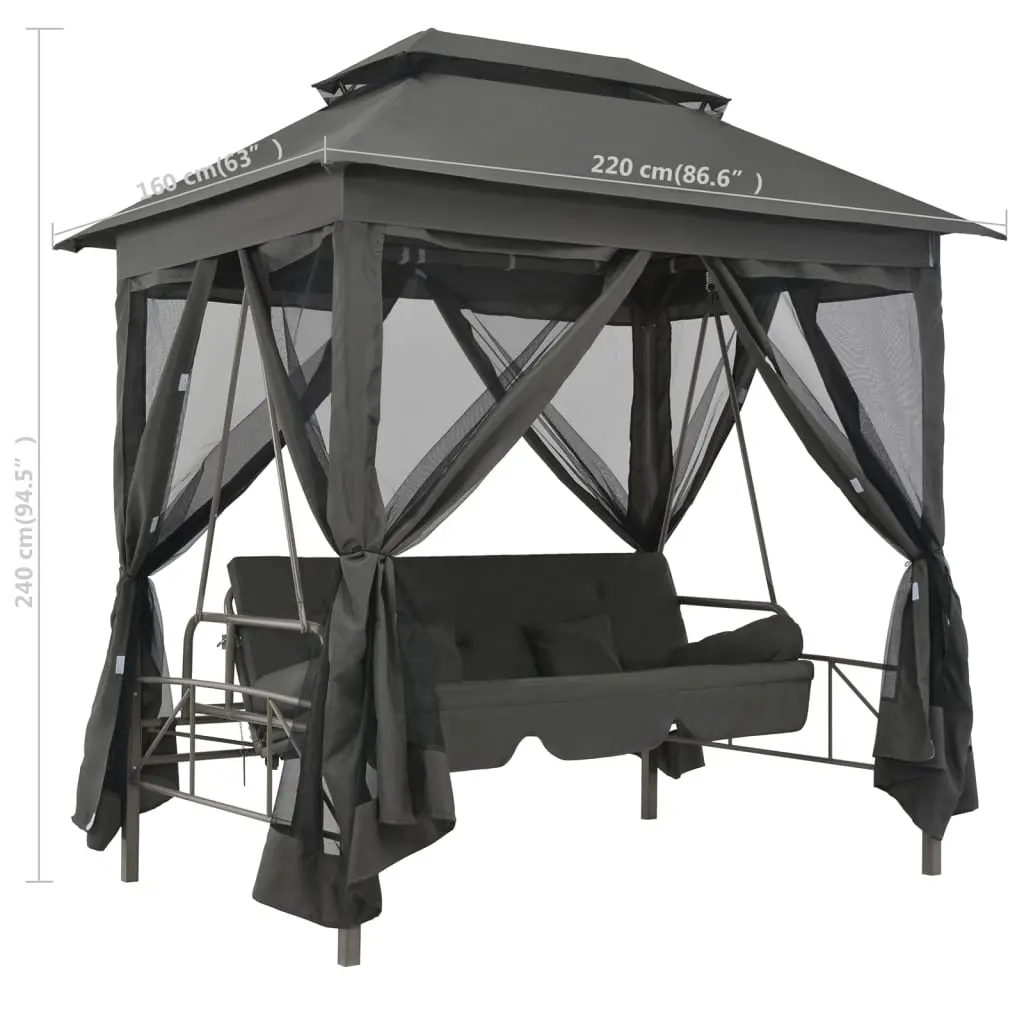 This Outdoor Convertible Swing Bench with Canopy is the perfect spot to relax and enjoy style, whether you’re soaking up the sun or chilling on warm summer nights with friends. It fits three adults easily, and the sleek anthracite look complements any outdoor decor, adding both functionality and style to your balcony, garden, or patio.