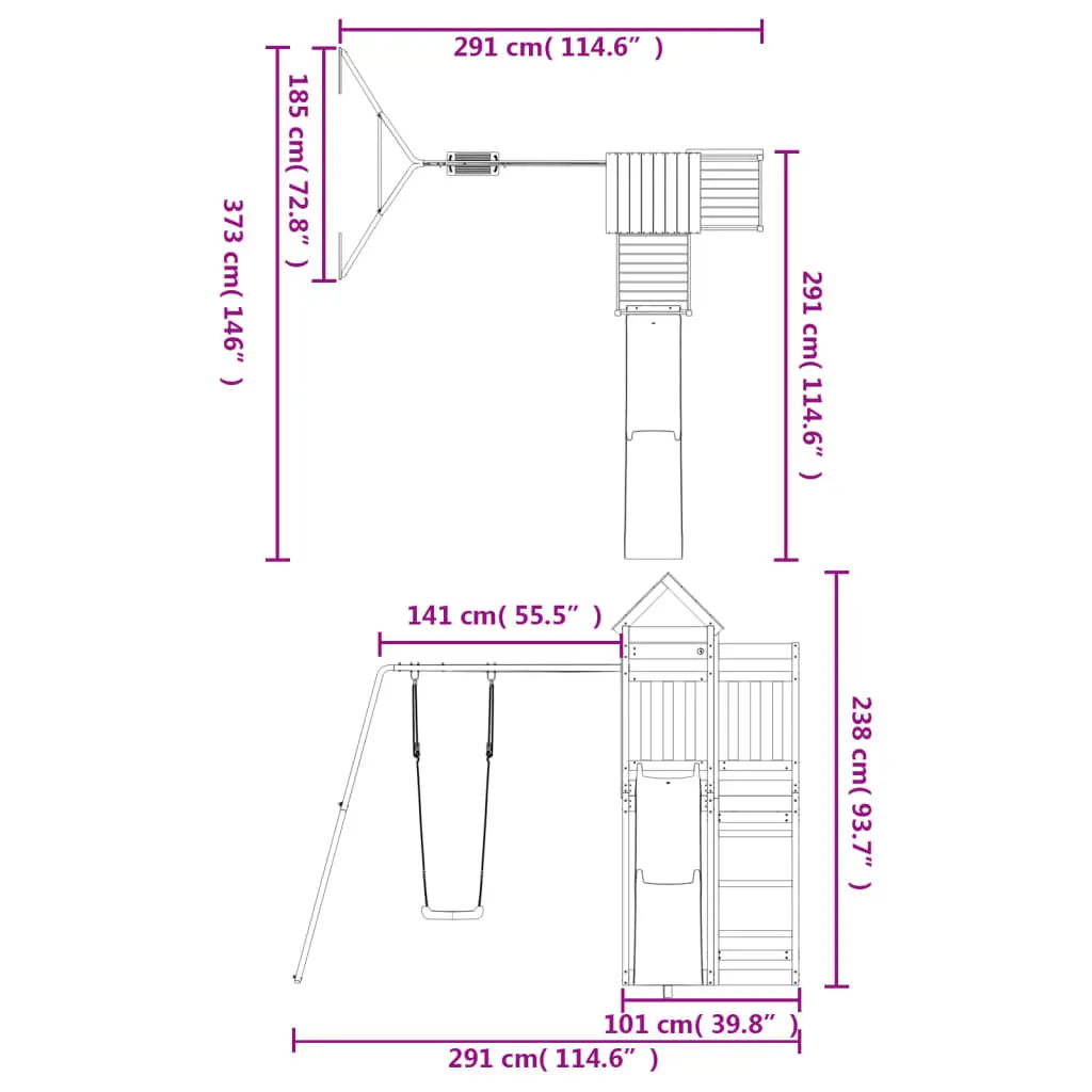 This Outdoor Playset is made to spark joy and creativity in kids aged 3 to 8. Built from tough solid Douglas fir wood, it has a rustic look that fits perfectly in your garden, adding fun and charm.