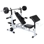 This weight bench with a weight rack and barbell and dumbbell set provides an ideal training solution for beginners and advanced users alike, for individual muscle workouts or combination exercises for entire muscle groups.