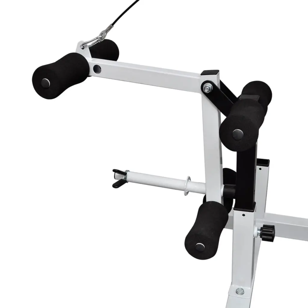 The bench press can tone arm and chest muscles. The curl and butterfly station provide definition for the shoulders and arms, while the leg-curl works the lower and upper thighs, and a cable pulley strengthens the entire group of back muscles. The wide range of workout combinations and exercises allows for an effective, total body workout, while the adjustable settings enable the workout to be adapted to suit your specific needs. The sturdy steel construction of the bench ensures your safety during the exercises. The rubberized, non-slip feet add more stability.