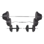 This versatile barbell and dumbbell set is perfect for chest, biceps, arms, triceps and back muscles. It includes two 33.1 lb plates, two 22 lb plates, two 16.5 lb plates, four 11 lb plates, six 5.5 lb plates, six 2.8 lb plates, two barbell bars and two dumbbell bars and has a total weight of about 264.6 lb.