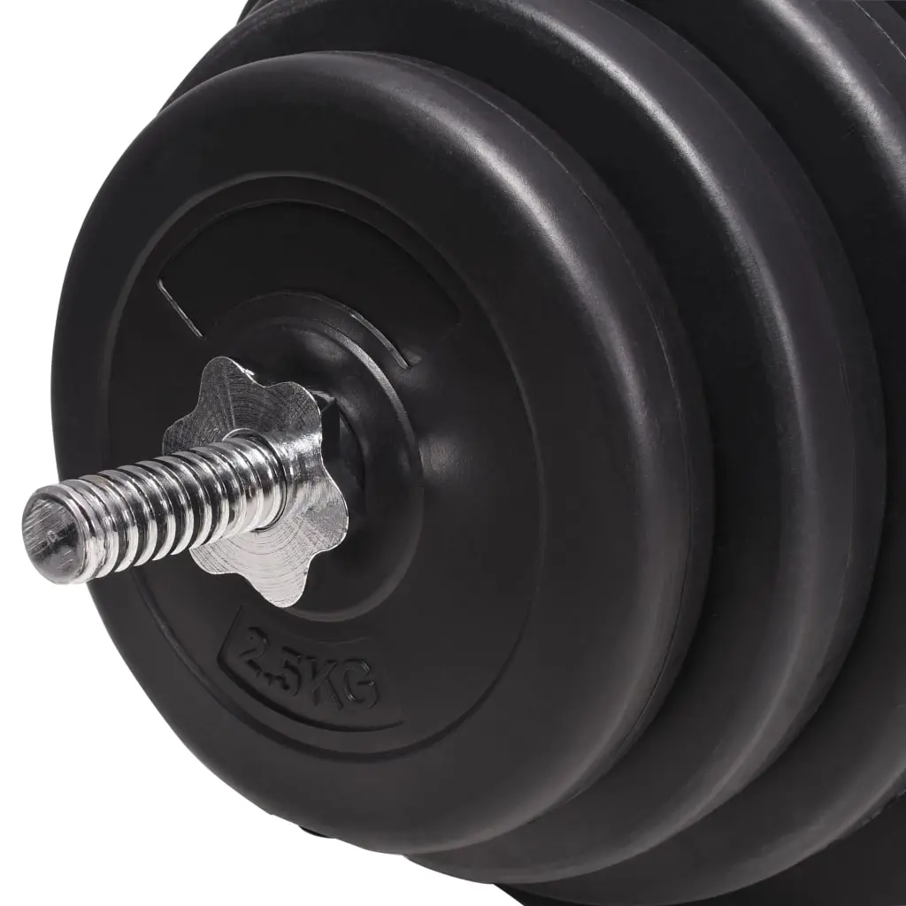 This set allows the users to variably select the weights they want to lift for different exercises. These plates are made of cement with a plastic shell and they can easily be secured onto the bars with the included star locks. The weight is clearly stamped on each plate for quick and easy identification.